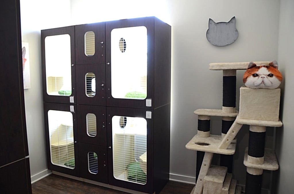 Located in a separate area away from the hustle and bustle of our other four-legged guests, our Cattery is a quiet retreat where your feline will feel right at home. Featuring a built-in feeding and watering ledge, a resting shelf, a private area for litter, and ample space for your feline to stretch out, our Cat Condos are the ultimate sanctuary of comfort for your pet.